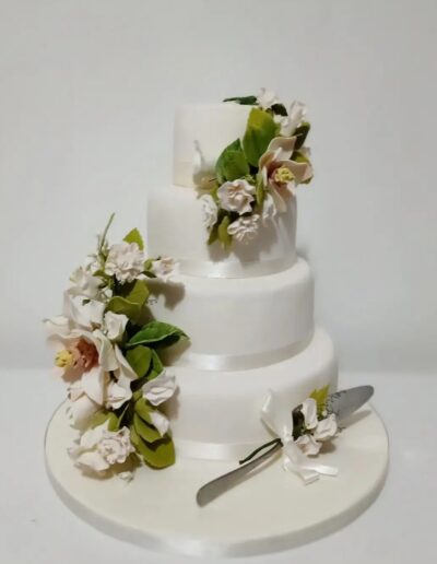 Once your design is finalised, then these delectably delicious wedding cakes are made with the finest quality natural ingredients,  and are covered in a white, milk or dark chocolate ganache, then beautifully iced in a luxury sugar fondant.